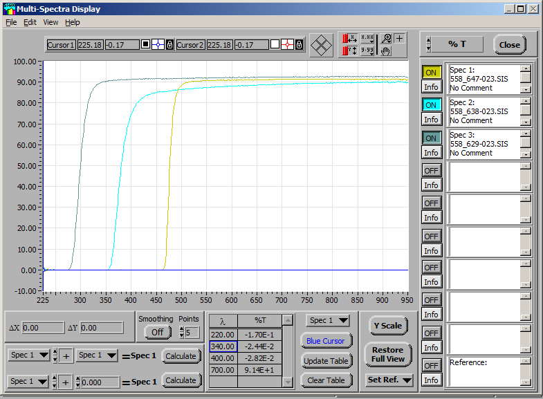 Multi-Spectra Overlay capability is included in the 400 Series UV-Vis Control Software