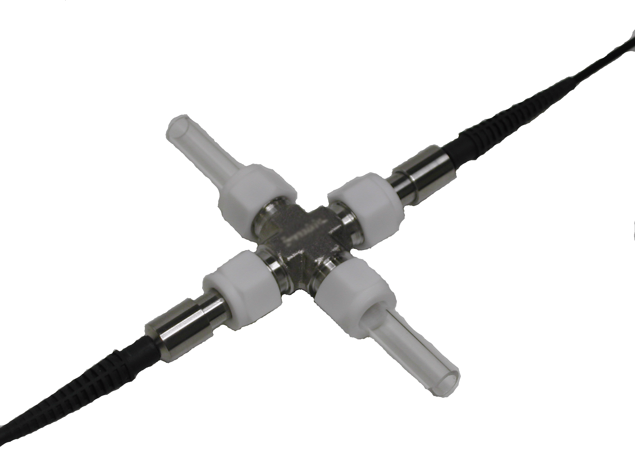 For situations in which it is simply not practical to remove a sample aliquot for analysis, or too dangerous, the S.I. Photonics fiber optic flow through cell is the perfect sampling accessory. Constructed entirely of 316 stainless steel, the flow through cell is virtually maintenance free and ideal for all UV/Vis spectroscopy applications. The small size and variable length fiber optic cables allow the flow through cell to be mounted just about anywhere. If desired, quartz sleeves can be incorporated into the flow through cell for maximum versatility.