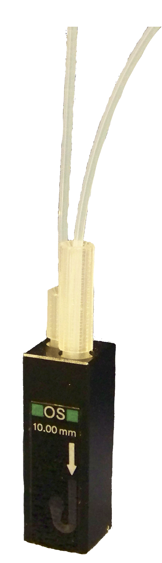 If your application requires small flow rates, our micro flow through cell is a convenient option. The flow cell is compatible with standard HPLC and PEEK fittings and the pathlengths and flow volumes can be adjusted to meet your needs.